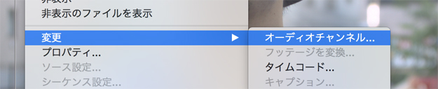 素材を読み込んでしまってからでも変更は可能です。その場合は読み込んだ素材を選択し右クリックして「変更」から「オーディオチャンネル」を開きます。プリセットの「モノラル」に変更すればモノラルトラックに振り分けることができます。