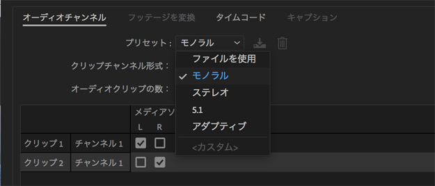 Premiere Proは初期設定では「音声をそのままの形式で使う」設定になっています。2モノラルなら2トラック別々ですが、1ステレオなら1ステレオトラックというようにトラック数が変わってしまうんですね。