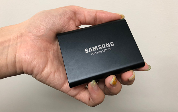 また、この小型・軽量なSSDはUSBメモリ感覚で使うこともできた。数メガバイトの小さなデータだとUSBメモリが使うことが多いが、Portable SSD T5ならUSBメモリのようなラフな扱いができるので、お借りしている間は細々としたデータ移動にも活用した。ハンドリングの良さはやはりHDDの比ではない。