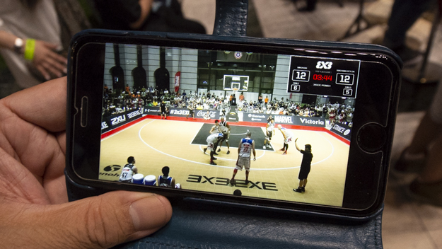 スマートフォンから観た3×3.EXE PREMIERのライブ中継。画面の右上に常時得点が乗っているので、試合の状況が一目でわかるようになった