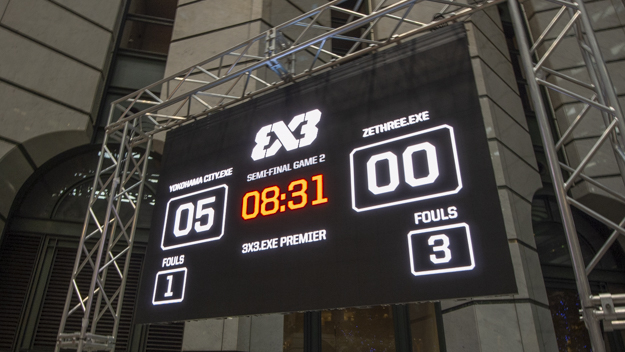 バスケットは展開が早いので、スコアをいちいち配信者側で手入力してCGで作っていると間に合わなくなる。3×3のライブ配信ではライブ中継のスコアは3×3公式のスコアと連動させ、スコアの入力作業を省いているのは大きなポイントだ。