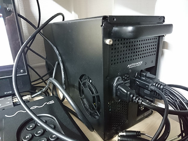 AKiTiOの安価なThunderbolt3ビデオカードボックス「AkiTiO NODE」にBMD製「DeckLink 4K Studio」をぶち込んだ。筆者の環境では無事に起動している。今回は色味を見たいのでそこから更にBMDの「SDI to Analog 4K」を通してHDの業務モニターに出力して色味を確認している。4KのままATOMOS社製収録機の「SUMO19」に表示させるという方法も便利だ
