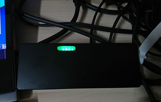 ただし、このストレージ構成は接続時に電源が不足することが多く、その場合にはThunderbolt3の規格上最大速度の半分以上を食い潰すこのSSDは上手く接続しないので、接続してディスクとして認識されるまで挿し直すと良い。1度認識されれば電源を切ったり再起動するまで接続は有効だ。面倒だが、メーカー非推奨なのでしょうがない。このノンブランドケースの場合、インジケータランプが4つ点灯すれば無事に繋がった証拠であり、この表示には非常に助かっている。