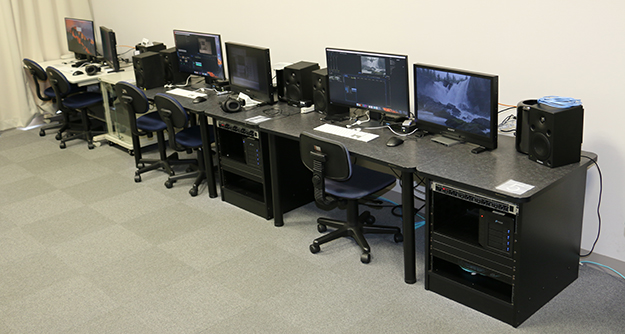 学内にスタジオや編集室を多数備えており、Io XTが導入された第一編集室と映像演習室のほか、第二編集室、映像スタジオ、録音スタジオ、MAルーム、サラウンド制作室、サウンドデザインルームなどが完備されている。各施設は授業で使用することはもちろん、学生のサークル活動など自主制作でも使うことができる。