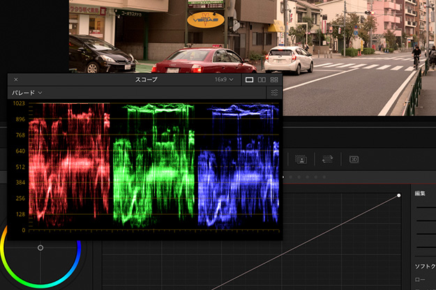 各カーブの動作に連動して、波形モニターやパレードスコップが動く様子を観察するには、図05_00をダウンロードしてDaVinci Resolveを実際に操作して見てはいかがだろう?わずかなカーブ操作でもコントラストやカラーが大きく変化することを実感してもらえると思う。