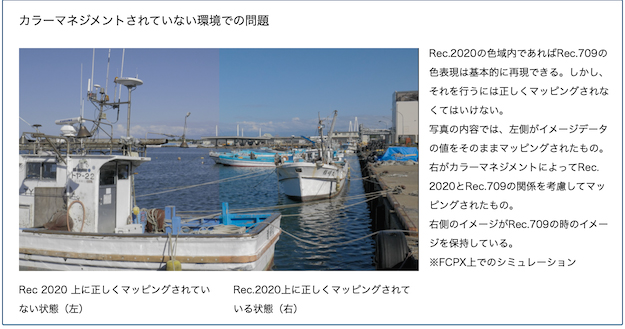 これらの要素をもとに適切な色域変換を通して色を管理し、目的の色域で映像を書き出す。さらに書き出されたものには色域の宣言となる情報を付加する。これらのことができてカラーマネジメントに対応といえるだろう。