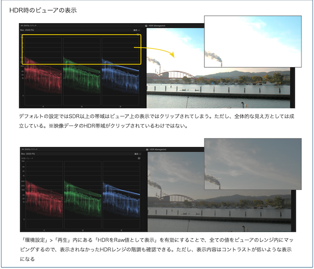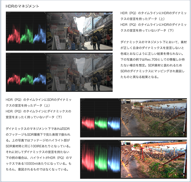 HDRの規格内容自体はここではふれないが、HDRを編集で扱うには先に説明した色域と同じようにマネージメントが必要になる。なぜならHDRとSDRの混在などがあり得るからだ。