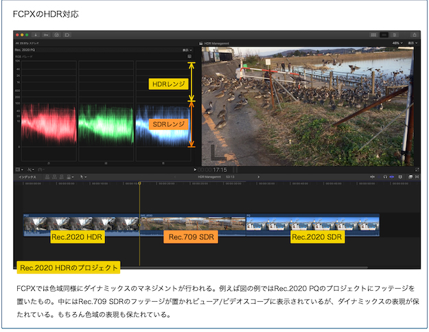 FCPXは他のNLEに比べてもスマートな環境で広色域/HDRをサポートしている。今回はFCPXでの広色域、そしてHDRに関して見ていこう。