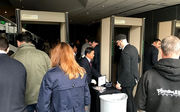 入り口では、金属探知機によるセキュリティー・チェックが。空港並の厳重さである
