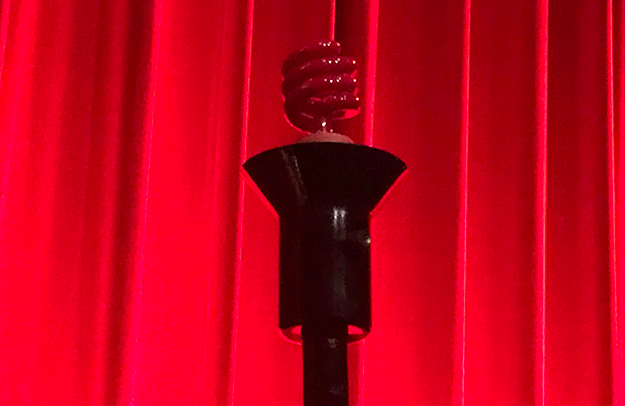 プレゼン中に持ち時間が終わりに近づくと、ステージ上では「アカデミー名物」の赤ランプが点灯し、知らせてくれる仕組みになっている。これにより、オンタイムでの進行をキープしている訳である。