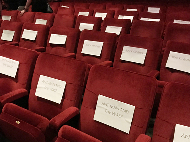 プレゼンテーションを行う各映画作品のスーパーバイザー達はステージ近くに席が確保されており、座席には作品名が貼られていた