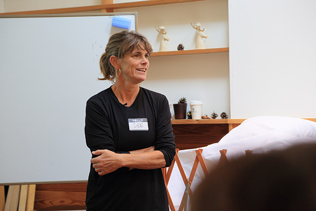 そんな中、僕が惹きつけられたのは、ワークショップの講師として竹内くんがアメリカから呼び寄せたDee Williams(ディー・ウィリアムス)という女性だった。ディーさんは、アメリカの「タイニーハウス・ムーブメント」でもカリスマ的な存在で、笑顔が素敵でとてもチャーミングな女性。とても家を建てるような人には見えないけど、彼女自身大きな家を手放して、自らセルフビルドしたタイニーハウスでもう10年以上暮らしている。