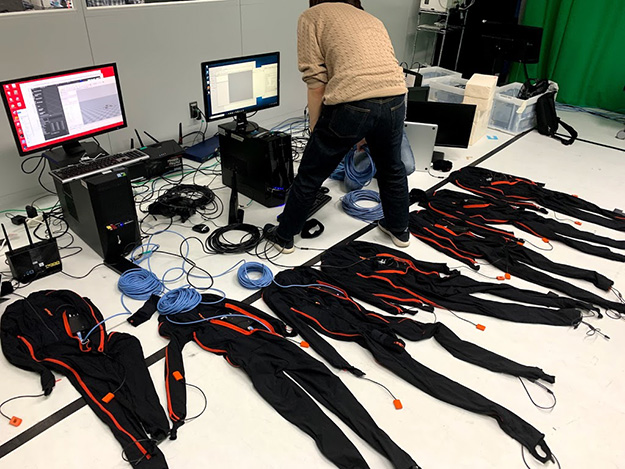 どうやっても熟練のエンジニアが一人ずつついてセッティングを行っていかないと配信時間に間に合わない。もっとも、配信に使っているスタジオが全身キャプチャに耐えられるほど広くないので、そのために新たに広いスタジオを…という事も考えなくてはならない。