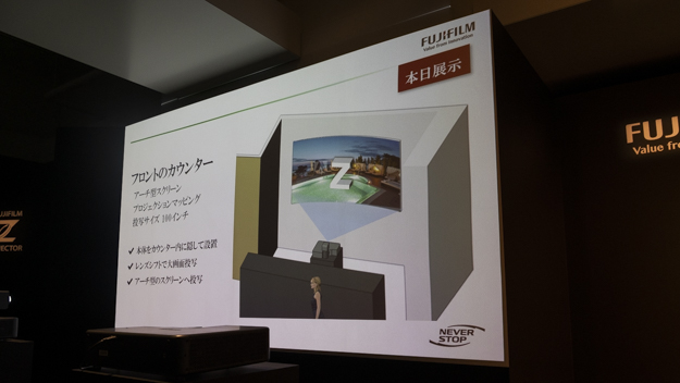 「潜在需要、潜在ニーズを解決するプロジェクターを富士フイルムは考えた。今まで置けなかったスペースにプロジェクターを置ける。これがFUJIFILM PROJECTOR Z5000である」と力を込めて紹介した。