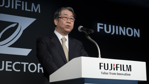 発表会は、最初に富士フイルムホールディングス 代表取締役社長COOの助野健児氏が登壇。同社の光学・電子映像事業部は1944年の事業発足で70年を超える歴史があり、4K/8K対応の放送用レンズやシネマ用レンズ、国境警備などに使われる超遠望監視カメラ用レンズなど、さまざまな分野において数々のイノベーティブなレンズを世に送り出してきてきたと紹介。