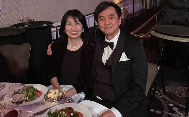 成田氏と奥様。成田氏の胸ポケットから見えているのはファルコン号の模型(筆者撮影)