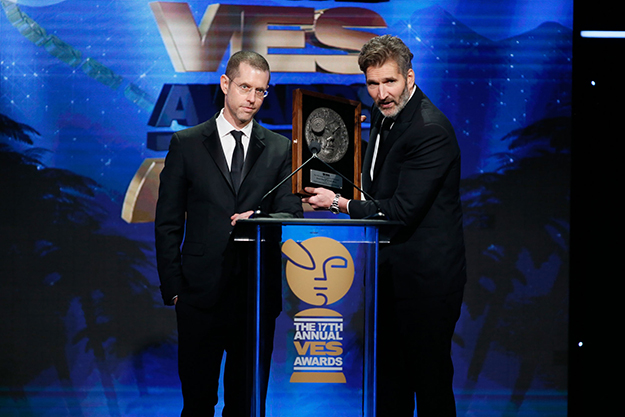 そして今年新設されたVESクリエイティブ・エクセレンス賞が、HBOの人気テレビドラマシリーズ「ゲーム・オフ・スローンズ」のエグゼクティブ・プロデューサー、脚本家、監督を務めるデイヴィッド・ベニオフとD・B・ワイスの両氏に贈られた。