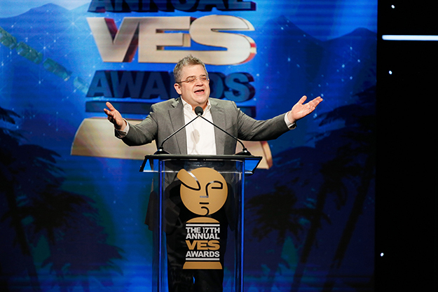 司会を務めた人気コメディ俳優パットン・オズワルト。8回目とあって業界ネタにも精通、数々の“VFXジョーク”を連発して場内を爆笑の渦に陥れていた(画像提供:VES)