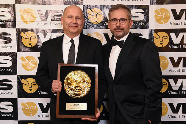 生涯功労賞(Lifetime Achievement)を受賞したクリス・メレダンドリ(左)、右は賞のプレゼンターを務めた俳優のスティーヴ・カレル(画像提供:VES)