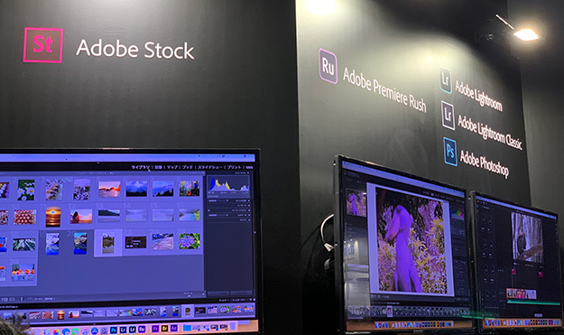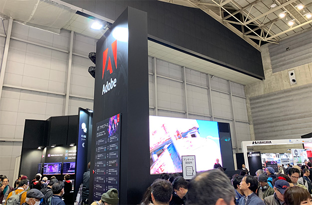 まずはアドビから。普段自分が参加する展示会のメインはPremiere Proがベースになる。映像を編集する時には欠かせないのだがアドビブースを見るとPremiere Proのが表には出ていなかった。