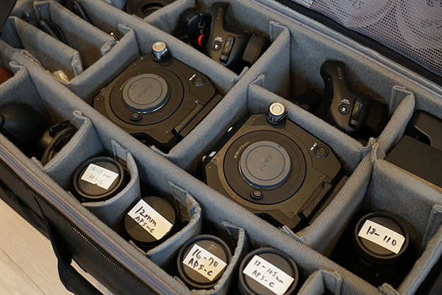 筆者はFS7を2台所持している。そのため、マルチカム撮影をする際はAirPort Roller Derbyを2台にそれぞれ1台づつ分けて収納して現場へ向かっていたのだが、人間とは贅沢なもので「FS7をまるっと2台収納できるカメラバッグはないのかな?」と模索を始めた。