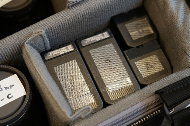 宿泊出張撮影で複数台のカメラとバッテリー、