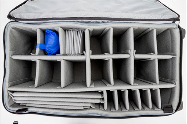 筆者が複数台のシネマカメラ(FS7)を収納するのに選んだのが「Logistics Manager 30」。2輪タイプだが、一人で取り回せるギリギリのサイズ感であろう。なにより、セパレーターの量が収納欲を刺激する