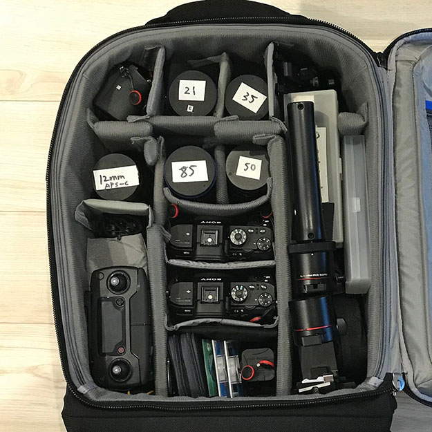 ボディ、交換レンズ、マイクはもちろん、ジンバル、ドローン、スライダーなどの撮影機材だけならまだしも、ある程度の照明や録音機材も所持し、自分で使うのが当たり前になった今、能率良く、かつ、効果的に収納をしなければ電車移動や飛行機移動、山の中や雪の中、様々な撮影現場への移動に対応ができない。