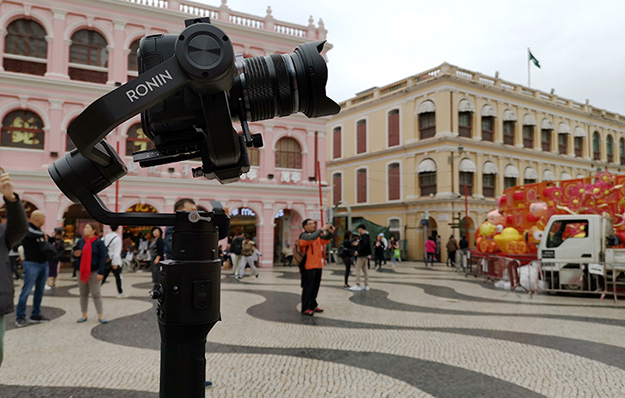 ゆっくりと街並みを進みながらの撮影は、読者諸賢ご存じの通り、大変な負担を強いる高難度の撮影だ。しかし、このセッティングでは軽いこのカメラを軽いRONIN-Sに付けるだけで済むため、ワンマンでの撮影が気楽に出来た。