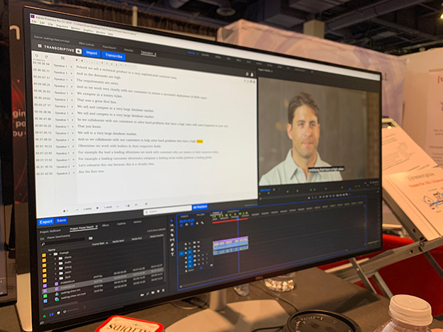 残念ながらブース名を確認し忘れてしまったが、Premiere Proにエクステンションして使える自動翻訳などもサードパーティから展示されていた。使用毎の課金となるが、日本語対応もされていて非常に興味深い内容だった。アドビが自動書き起こし機能をやめてしまったのもあるのでこういうものはユーザー的には大歓迎だった。