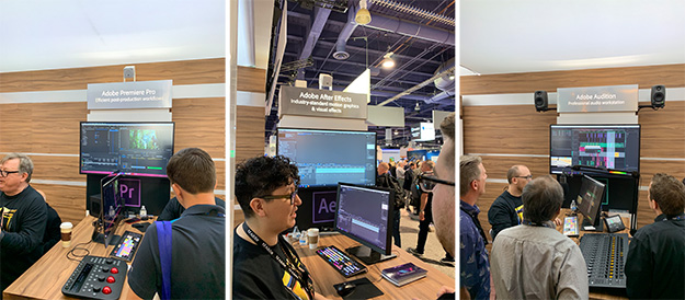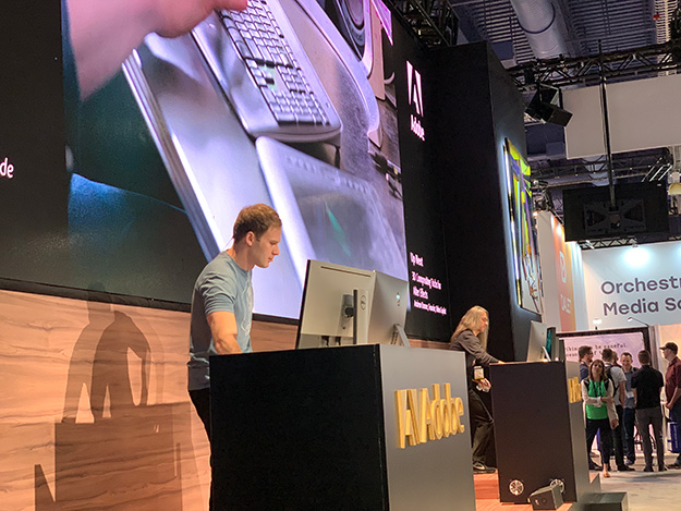 アドビブースはステージとブースで分けた構成に。InterBEEではよくみていた構成ですがNABは規模が格段にアップしていた。ステージでは各アドビのアップデートの他に超有名人も参加。