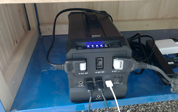 電源はLACITA ENERBOXというポータブル電源を購入。容量120000mAh・最大出力400Wで配信機材のみであれば半日以上運用が可能だ。しかし、屋台での「湯気」を出すためにおでん保温鍋を使用している。これが電気をかなり消費するため、実質2時間弱が活動限界になっている。
