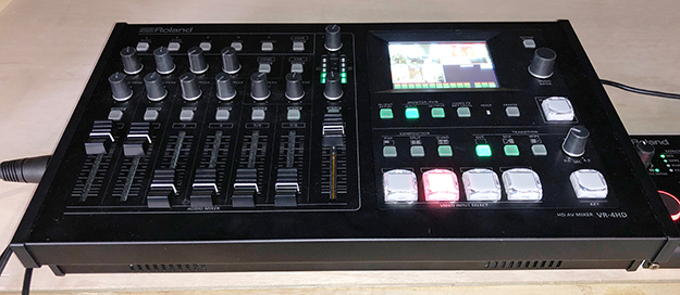 自分も聞き手として出演するためオペレーションはできるだけ自動化したい。そこでスイッチャーは「オート・ミキシング機能」と「オートスキャン」が搭載されているRoland VR-4HDを選んだ。
