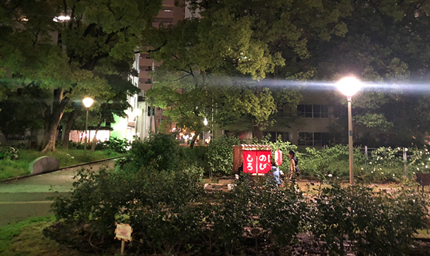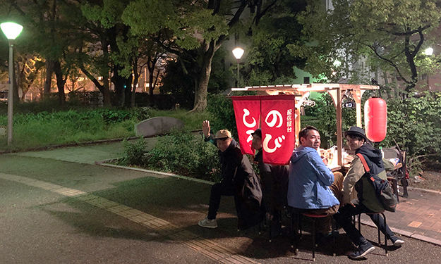 そこで、担当者の方と相談した結果、今回は「撮影をする」ということで撮影許可証をいただいて配信を行うことができた。2時間8040円の使用料が必要となる。そして、飲食は公園の床を汚す恐れがあるので飲み物以外は基本NGとなった(なので、おでん保温鍋にはお湯のみが入っていた)。許可はもらって配信はできるが、毎回使用料を払うのは現実的ではない。