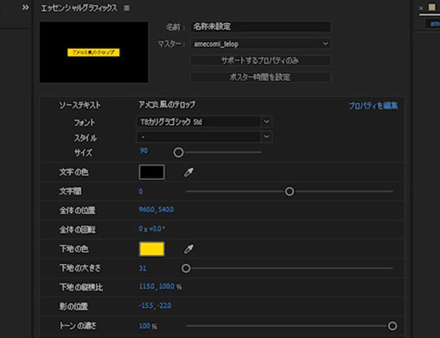 各機能をエッセンシャルグラフィックスパネルにドラッグ&ドロップしていきます。