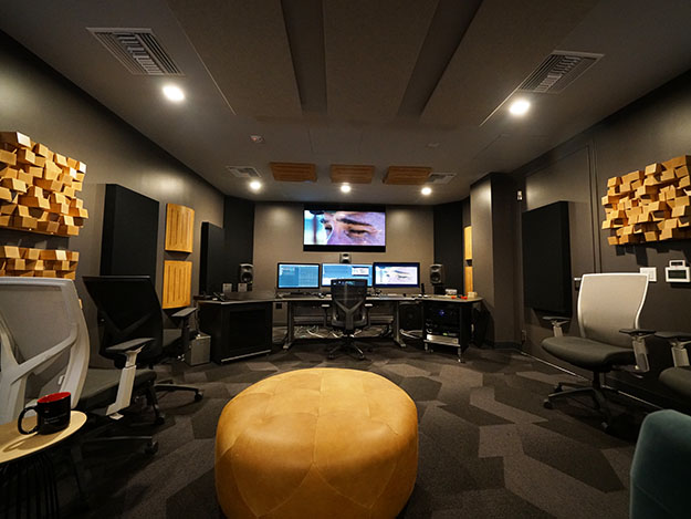 音響も5.1フルサラウンドの音場を構築しています。ハリウッド定番のGrace Designのサウンドコントローラー、Genelicスピーカーも実装しています。これらもお客様のスタジオ環境と合わせて、プリアンプ、AJAなどのIOボックスなどアウトプット方法は変更します。