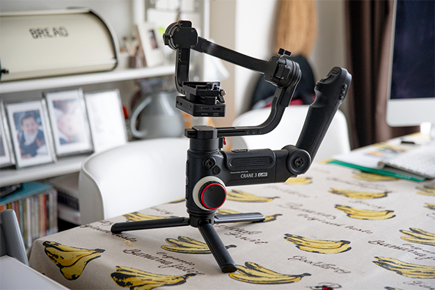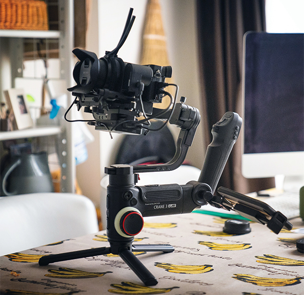 ジンバルを操作している際、モーターが負荷に耐えられなくなると異常振動が起こったり、カメラがぐるぐる変な方向に廻ってしまいます。しかし、CRANE 3 LABでそのような局面は皆無でした。普段は他の機種を使っているカメラマンが、普段は怖々とおこなう必要のあるカメラワークをCRANE 3 LABで試してみて、楽々とこなしてくれることに驚喜してました。筆者もコントロール不可になってしまう姿の印象が強いのでジンバルを所有しようと思ったことがなかったのですが、CRANE 3 LABを触ったことでイメージが好転、衝動買いにいたります。
