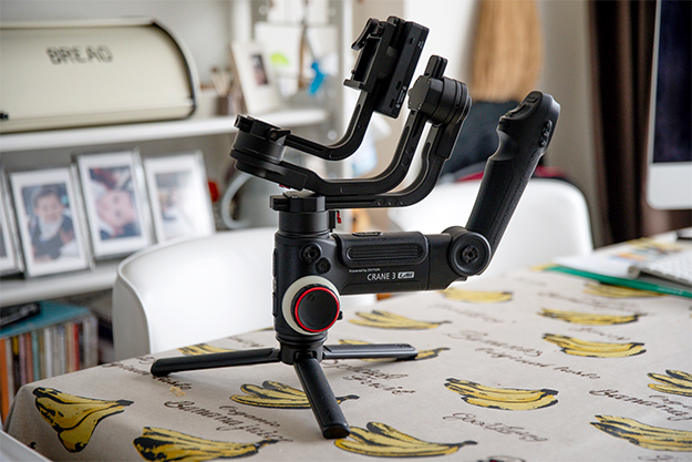 ちなみに筆者が購入したのは、Masterパッケージ。カメラバックや気の利いた小物、一脚、フォローフォーカス、フォローズームが付いてて、満足度の高いパッケージです。このジンバルはローアングルで構える時に持ちやすい形状のメイングリップと、開くとテーブル三脚になる下部グリップを併せ持ったスタイルが特徴です。