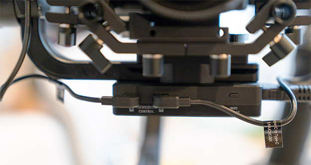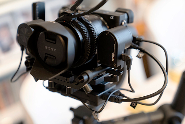 オプション(マスターパッケージには同梱)のフォローフォーカスとサーボズーム。スタビライザー本体からの電源供給と、グリップ部分のシーソーボタン、ダイヤルでコントロールできるコンパクトさ。