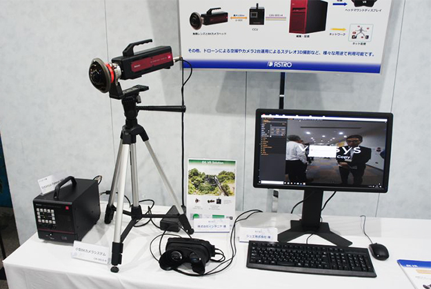 3DシステムはEntaniya Fisheye HAL 250フィッシュアイレンズを装着した8Kカメラ2台とCCU、ヘッドマウントディスプレイなどで構成されており、高解像度の円周魚眼映像を撮影可能