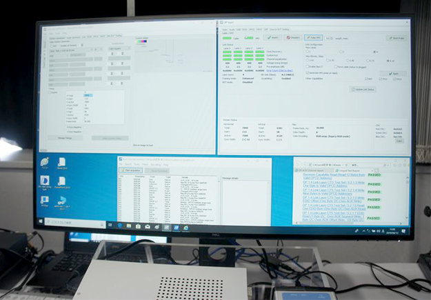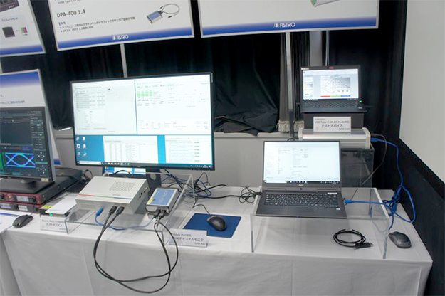 DisparityPort1.4対応テストディバイスUCD-400。同社が国内代理店をつとめているUNIGRAF社のもので、DisplayPort 1.4準拠の入出力インタフェースに対応。HBR3により最大8K/30pおよび4K/120p解像度の入力信号解析のほか信号出力機能に対応しており、シンク、ソースおよびリピータ機器の試験が可能。なお、オプションでVESA認証のDP1.4 LL CTSおよびDCP認証のHDCP2.2 CTSの各認証試験機能にも対応できる