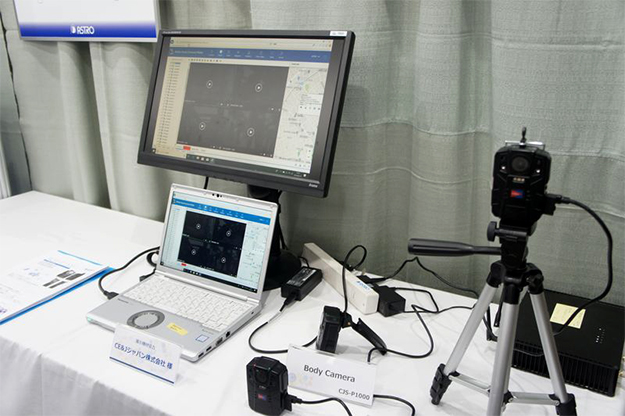 映像などのデータをネットワークで伝送するための各種製品として、8Kの超低遅延IP伝送装置や館内共聴システム、新製品のTSマルチプレクサに加えて、人が身に着けるウェアラブルカメラBody Cameraの実演デモなども行われていた。