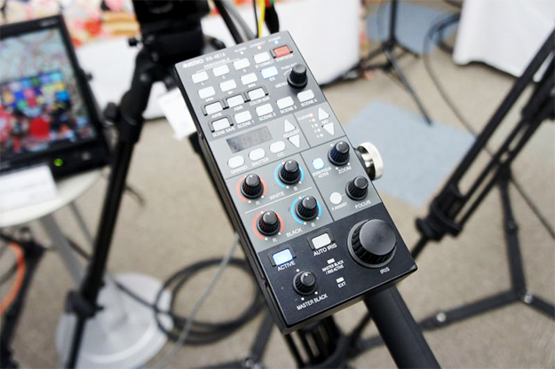 カメラリモートRB-4816。アイリスやゲインの調節のほか、RECスタートや再生、ホワイトバランス、シーンファイルなどカムコーダーのリモートもできる