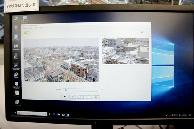 また、Tamazone WorkstationによるAIやCGVR、アップコンバート技術や高精細3DCGによるバーチャルミュージアム。ハイパフォーマンスコンピューターTamazone Workstationを使用したノンリニア編集システムのほか、簡易リニア編集システムや240P/120P/60Pに対応しスロー演出の可能なビデオサーバー、4系統のスーパー入力に対応した8K DSK、8K to HDの切り出し用コンバータ、12G-SDI対応55インチ8Kモニターを紹介。