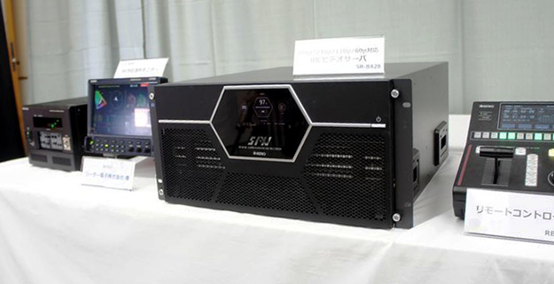 8K240pを4時間記録可能なビデオサーバーSR-8428。4時間連続ループ収録と再生を同時に行うことが可能で、リモートコントローラーによる可変スロー操作や再生に対応。8K240p以外にも480p/240p/120p/60pに対応しており、4KとHDのダウンコンバート映像を同時に出力することも可能