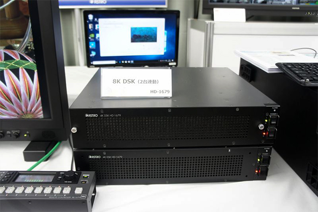 DSKとしてHD-1679を2台使い8Kをサポート。8K60p YCbCr 4:2:2のライン信号に対してスーパー4系統の合成が可能なほか、8K60p YCbCr 4:2:2スーパーを4系統USKすることができる。スーパー入力として12G-SDI Quadを4系統、ライン入出力1系統が可能