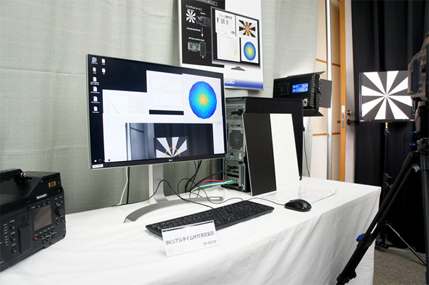 8KリアルタイムMTF測定装置IP-8030。ズームレンズなどの焦点距離を変えながらの測定やMTFが最適となるF値の探索のほか、光学特性とディテール補正・エンハンス補正などの各種プロセスとの総合MTFの測定がリアルタイムに測定可能。また、光軸歪みの検出や画素構造や各種プロセスによる異方向の検出ができる。4KリアルタイムMTF測定装置IP-4030の8K版