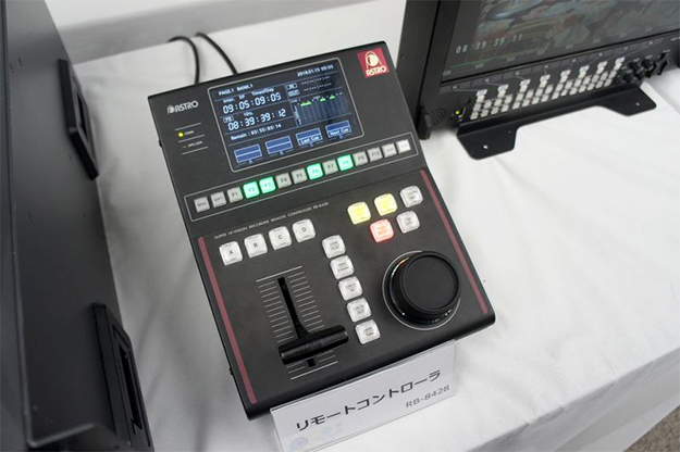 ビデオサーバーSR-8428用のリモートコントローラRB-8428。可変スロー操作や再生などの操作を行うことができる