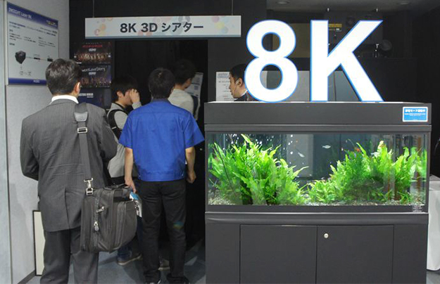 会場は本社ビルの2階と6階で開催され、2階は高輝度8Kプロジェクターと8K/120p映像技術を応用した、アクティブシャッター方式による超リアルな3Dコンテンツを22.2ch音声システムで体感できる8Kシアターや、8K 120Hzシート型有機ELディスプレイ、化学分析および検査機器を披露。