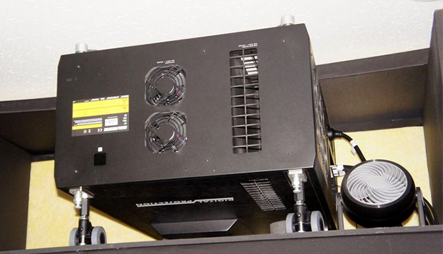 8Kによる3Dシアターで使用された英Digital Projection社のINSIGHT Laser 8Kプロジェクター。3つのDMD素子を採用することで、25000ルーメンという高輝度を実現。ダイナミックレンジはHDR(HLG)、色域はBT.2020にも対応可能